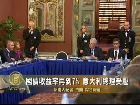 【新唐人2011年11月16日訊】意大利新發行的國債收益率再度飆升,10年期的再度達到7%的警戒線,讓正在著手組閣的意大利總理蒙蒂受到壓力,蒙蒂星期二與商屆領導人舉行了會談。