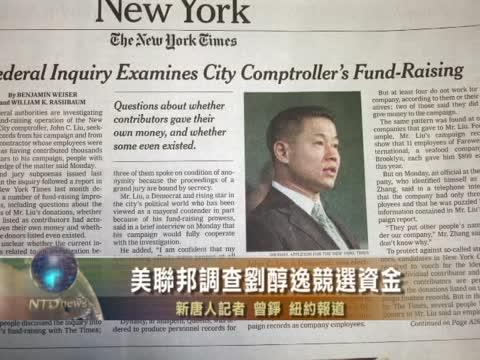 【新唐人2011年11月16日訊】紐約華裔主計長劉醇逸在競選期間,活動捐助資金的來源問題引起爭議,美國聯邦當局最近正調查他是不是涉及不當收受政治獻金,以及接受外國資助,請紐約記者曾錚帶我們進一步了解