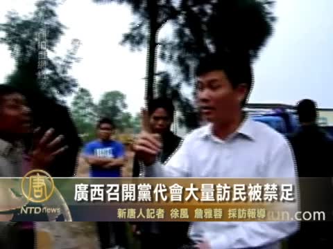 【新唐人2011年11月16日訊】中國廣西第十次黨代會11月11日到15日在南寧市召開,連日來,各城區的上百名曾上訪過的市民被警告、監控、甚至被限制人身自由。這些訪民都是權益受損,投訴無門的老上訪戶,像農田被污染、土地被強佔或房子被強拆。