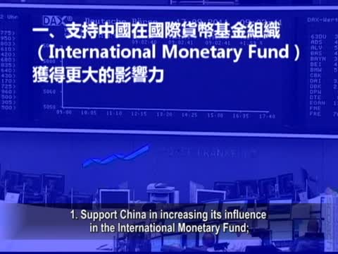 一、支持中國在國際貨幣基金組織(International Monetary Fund)獲得更大的影響力﹔