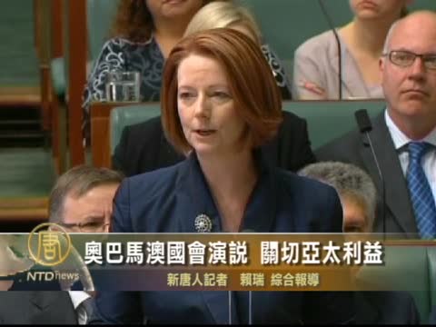 【新唐人2011年11月17日訊】美國總統奧巴馬17日在澳洲國會發表演說,強調美國雖然削減軍費,但不會忽略亞太區,而且美國將常駐亞太,擔當更重要且持久性的角色。