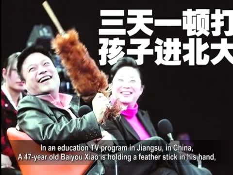【新唐人2011年11月18日訊】一支雞毛撢就能解決教育問題嗎﹖廣東省一位被稱為「狼爸」的父親,對他4名子女嚴厲教育,其中3個孩子考進北大。最近他拿著一個雞毛撣,去參加某電視臺的辯論,他說,“打”是家庭教育不可缺失的部分,雞毛撣就是他教育孩子的秘密武器。不過,有人認為這是「奴性教育」,也有學者表示,中共謊言與暴力的黨文化,才是中國大陸教育的問題所在。