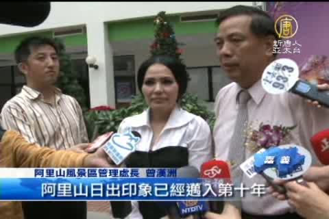 【新唐人亞太台2011年11月18日訊】提起嘉義,讓人聯想到阿里山日出印象音樂會,它已經成為阿里山最具代表性的大型活動,每年元旦都會吸引數以萬計的遊客,2012年主辦單位特別加入了歌謠比賽,並邀請知名歌手潘越雲為活動代言人,要和大家一同迎接2012年第一道曙光。