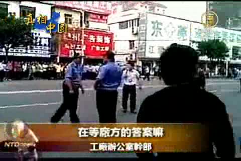 【新唐人亞太台2011年11月18日訊】來關心中國新聞真相報導。廣東東莞台資裕成製鞋廠工人因不滿廠方裁員、縮減獎金,昨天(17號)爆發七千工人上街抗議。地方當局出動近上千名防暴警察鎮壓,多人被警察打傷住院,19人被抓捕。