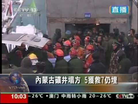 【新唐人2011年11月19日訊】根據中國大陸媒體星期六()9日報導,位於內蒙古錫林郭勒盟鑲黃旗的塬林煤礦,星期五發生井下頂板塌方事故,12人被困,到星期六為止,已有5人獲救,但還有7人仍被埋在地下。