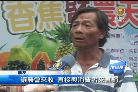 【新唐人亞太台2011年11月19日訊】最近香蕉、高接梨價格暴跌,果農損失慘重,南投縣農會舉辦農夫市集,讓產地農民直接銷售給消費者,透過宅配或訂單,將當季農產品直接由農民或產銷班賣給消費者,既解決農產滯消及中間商剝削的問題,民眾也能買到新鮮而且價格合理的蔬果。
