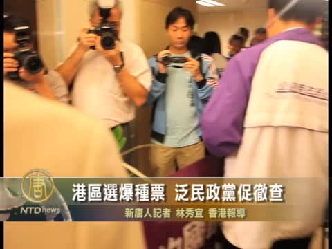 【新唐人2011年11月22日訊】香港區議會選舉風波未了,有媒體揭露建制派瘋狂種票。泛民主派五大政團星期一到選管會抗議,要求當局徹查種票事件,堵塞選民登記漏洞,維護選舉公平。有政黨準備提出選舉呈請。