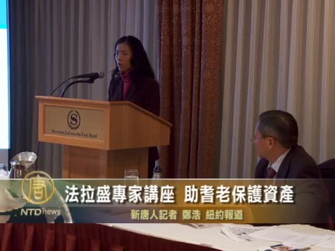 【新唐人2011年11月22日訊】上週末在法拉盛喜來登飯店7樓,舉辦了首場「耆老法遺產規劃」中文講座,幫助華裔老人了解遺產規劃和耆老法互為補充的重要性。請看報導。
