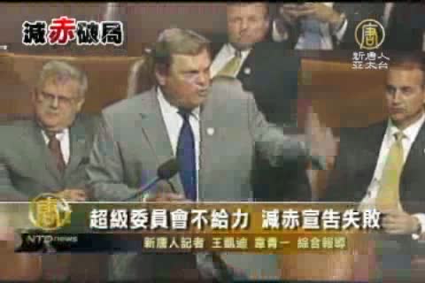 【新唐人亞太台2011年11月22日訊】全球景氣普遍面臨寒冬,接下來,新聞焦點來到美國。肩負削減美國政府赤字重責的美國國會「超級委員會」,民主黨和共和黨雙方意見嚴重分歧,21號下午,宣告1.2兆美元的減赤方案失敗。國會宣布減赤失敗後,美國股市再度重挫,道瓊指數大跌了近兩百五十點。我們的記者,王凱迪,在華盛頓現場的報導。