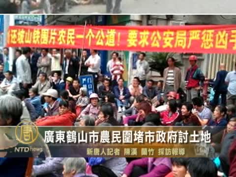 【新唐人2011年11月23日訊】近日,就在廣東汕尾陸豐市的農民,上街遊行“討人權”的同時,廣東江門鶴山市的農民也群聚在鶴山市政府門前,拉布條、靜坐抗議,要求歸還被強徵的土地。
