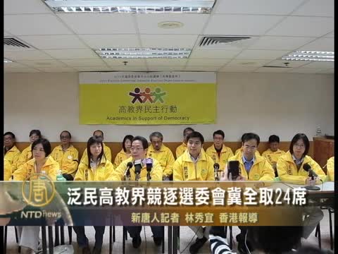 【新唐人2011年11月23日訊】由香港泛民主派來自各大專院校24人組成的「高教界民主行動」參選今屆選委會,他們日前召開記者會,呼籲教育界選民踴躍支持,希望能全部當選。