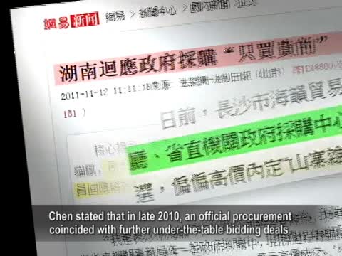 【新唐人2011年11月24日訊】湖南一家民企老闆陳榮原來想揭露一場招標的“貓膩”,卻牽扯出湖南省財政廳等機關在政府採購中,為了花掉預算而“突擊花錢”的黑幕。陳榮將三個廳局單位同時告上了法庭,此案被稱為“史上最牛的民告官案”。