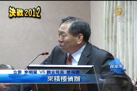 【新唐人亞太台2011年11月24日訊】各政黨候選人完成參選登記後,維安規格隨之升級。國安局長蔡得勝今天(24日)到立法院進行備詢時說,國安局已經強化維安部署,對於任何風險,都會高度警戒。
