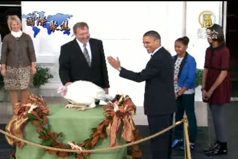 【新唐人亞太台2011年11月24日訊】星期四是感恩節。按照傳統,美國總統歐巴馬,感恩節前夕在 白宮赦免了兩隻名為「自由」與「和平」的火雞。這兩隻幸運獲得赦免的火雞,將可以在華盛頓總統故居--佛南山莊(Mount Vernon)安度餘生。