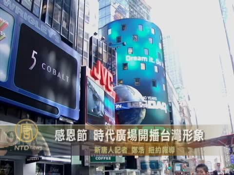 【新唐人2011年11月25日訊】10月24日,紐約時代廣場電視牆開始循環播放台灣觀光影片,藉著節日氣氛吸引全世界更多遊客到台灣觀光。請看報導。
