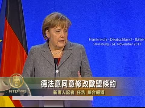 【新唐人2011年11月25日訊】星期四(11月24號),德國總理默克爾(Angela Merkel)、法國總統薩爾科齊(Nicolas Sarkozy)和意大利新上任的總理蒙蒂(Mario Monti),在法國斯特拉斯堡(STRASBOURG)的會議中,同意修改歐盟條約,加強歐洲的金融體系,以避免國債危機繼續擴大。