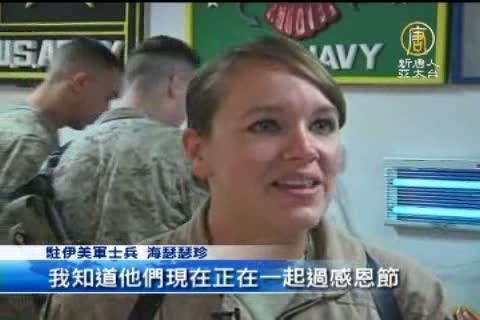 【新唐人亞太台2011年11月25日訊】美國一年一度的感恩節,除了本地人開心的闔家團聚外,身在海外維護他國安全的美軍士兵,也在駐軍部隊相聚慶祝。