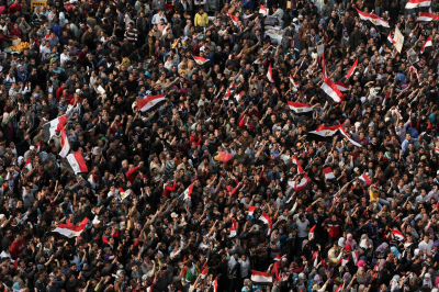 開羅標誌性的解放廣場從星期五清早直到午間禱告一直擠滿數以萬計憤怒的埃及民眾,示威民眾高呼“自由、自由”的口號。
