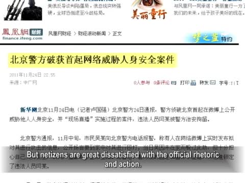 警方通報說,這是北京警方破獲首起網路威脅人身安全的案件。但官方的說辭和做法引起了網友們的極大不滿。