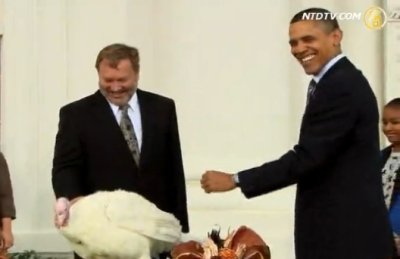 今年美國的感恩節是11月24日,按照慣例,美國總統會赦免一只幸運的火雞,使其免予淪為桌上佳餚。11月23日上午,總統歐巴馬和兩位女兒在白宮舉行了赦免感恩節火雞儀式, 赦免了兩只名字分別為「自由」和“和平』的火雞,這兩只火雞將被送往農場,無憂無慮度過餘生。