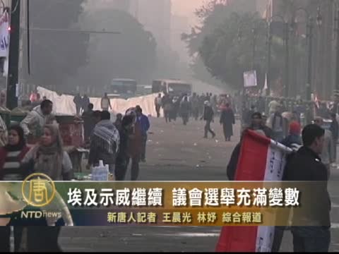 【新唐人2011年11月27日訊】11月27日,抗議者們再次聚集在開羅解放廣場、國會及政府辦公大樓等處,要求埃及軍政府下臺,並試圖阻止穆巴拉克時期官員、前總理甘蘇瑞上任。這次抗議也使得即將在星期一舉行的,穆巴拉克倒臺後首次議會選舉充滿了變數。