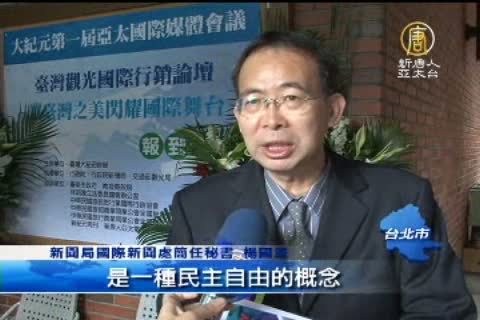 新聞局國際新聞處簡任秘書 楊國添:「其實大紀元也在推廣,是一種民主自由的概念,跟我們新聞局想要,推廣的台灣的民主,其實是理念是相契合的,這也是另外一點,為什麼我們新聞局跟大紀元,在海外時常保持密切的合作關係。」