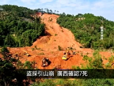 大陸廣西省近日發生一起盜採稀土引發山崩的事故,7名盜採者失蹤。這7人遺體今天全數找到,廣西警方並拘留其餘3名疑是同夥的嫌犯。