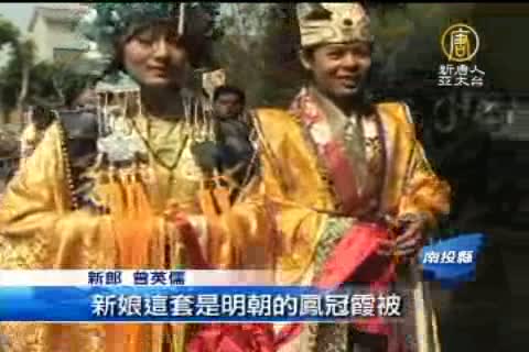 【新唐人亞太台2011年11月29日訊】您也許看過身著傳統服飾的結婚典禮,但是真正考究的正統漢服婚禮可就不多見了。南投市有一位漢服設計家,利用所學設計出許多套的結婚禮服,並在自己的婚禮上向賓客們展示,讓來賓在驚艷之餘,也認識到傳統服飾之美。