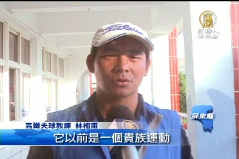 【新唐人亞太台2011年11月29日訊】隨著曾雅妮在高爾夫球賽的發光發熱,高爾夫球這個運動項目,在台灣逐漸發燒,而在南台灣的屏東,有對父子檔的高球教練,多年來不遺餘力,深入基層推動高爾夫球運動,讓這個國際性的運動在校園扎根,讓我們來看看他們的故事 。