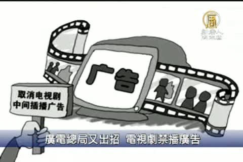 中共廣電總局對媒體實施的最新限制,要求全國所有電視臺從2012年開始,全天播出的電視劇時段,一律禁止插播廣告。