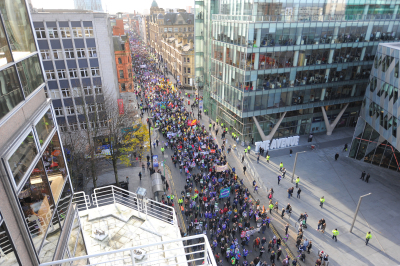 包括教師、醫院工作人員和邊防人員在内的2百萬英國公共部門員工,參加了星期三的大罷工,令面临经济衰退风险的英国聯合政府更添压力。