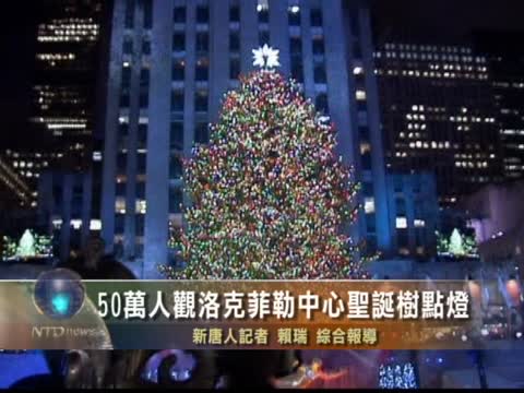 【新唐人2011年12月1日訊】紐約洛克菲勒中心30日晚間大約湧進了50萬民眾,為聖誕樹舉行了第79年的點燈儀式,在民眾與觀光客齊聲倒數下,裝飾在聖誕樹上的三萬顆LED燈瞬間大放光明,現場氣氛high到最高點。