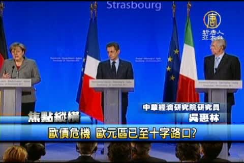 【新唐人亞太台2011年12月1日訊】上星期德國國債拍賣失敗、意大利和西班牙短期國債利率飆升,意味著歐債危機的發展到了一個新階段。主權債券市場已幾乎癱瘓,歐元區主要銀行已無法在公開市場融資,發生擠兌的可能性大幅增加。有報導稱,為避免出現歐元區解體的慘劇,IMF可能向義大利提供4000億至6000億歐元的金融支持。甌元區真的有可能走入歷史嗎?今天的焦點縱橫,為您解析。