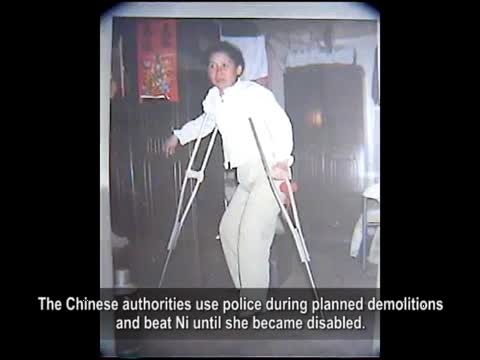 倪玉蘭畢業於中國政法大學,從事律師工作,她因為房屋被強拆陳情多年,當局為強拆動用警力,將倪玉蘭打成殘疾,後來她還被判刑,並被吊銷律師執照。倪玉蘭後來在牢獄中說,我的生命安全受到嚴重威脅,經常被西城公安警察毆打、謾罵、監視、跟蹤、軟禁,到醫院看病的權利已被警察剝奪,他們不准醫生給我看病。從2004年7月27號到2006年3月16號,我失去人身自由長達597天。