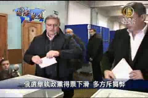 【新唐人亞太台2011年12月5日訊】關心國際重要新聞。俄羅斯下議院選舉,星期天(4號)結束投票。根據俄羅斯中央選舉委員會5日公布的最新計票結果,在超過半數的選票統計結束後,統一俄羅斯黨在4日舉行的國家杜馬選舉中的得票率繼續超過其他政黨,穩居領先地位。