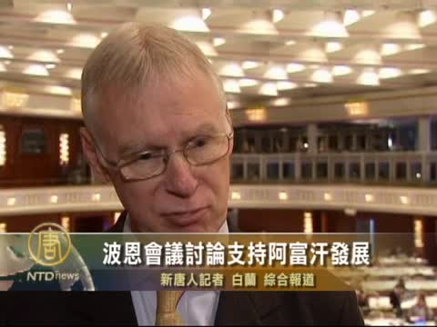 【新唐人2011年12月6日訊】有關阿富汗未來的全球大會星期一在德國波恩舉行,北約駐阿富汗代表西蒙蓋斯表示會議上討論了在2014年國際作戰部隊撤離阿富汗後,國際社會如果繼續支持這個國家的發展。