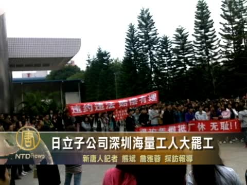 位於深圳南山科技園的海量存儲設備公司,員工從4號深夜開始罷工靜坐,他們拉起寫有:「違約違法 賠償有理」及「無恥日企欺壓中國員工」、「要改嫁 先賠償」等抗議布條。