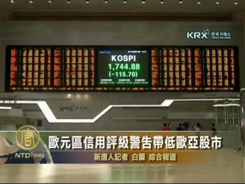 【新唐人2011年12月7日訊】國際金融信用評級機構標準普爾有關整個歐元區面臨信用評級下調命運的警告,令歐洲和亞洲股市做出緊張反應,歐洲股市和歐元以及亞洲股市星期二出現下滑。