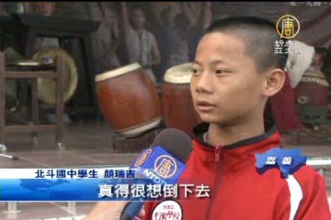 【新唐人亞太台2011年12月7日訊】一群來自弱勢家庭、年僅14到16歲的青少年,在優人神鼓藝術團和學校老師的指導下,以「雲腳」走一天路、打一場鼓的方式,預計走完西台灣13個鄉鎮,雖然學習打鼓只有短短半年時間,但這群青少年卻以精湛的擊鼓技巧,博得熱烈的掌聲。透過鏡頭帶您一起去看看。