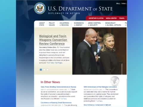 國務卿希拉里:「美國與伊朗沒有外交關係,我們因此錯失一些與您-伊朗公民-對話的重要機會。但今天,我們可以使用新科技填補這個空缺,促進國家與國家之間以及雙邊民眾之間更深入的了解。」