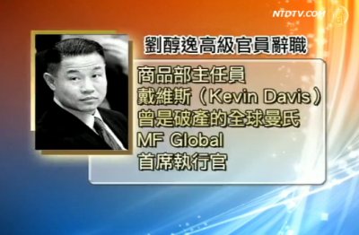 據《華爾街日報》報導, 辭職的官員戴維斯(Kevin Davis)是劉醇逸聘用的商品部主任,三個月前就職時曾引起極大的爭議,因為戴維斯曾經是已經申請破產的全球曼氏MF Global的首席執行官,這家公司的市值自2008年以來已經下降了90%,使它的客戶損失了高達12億美元的資金。