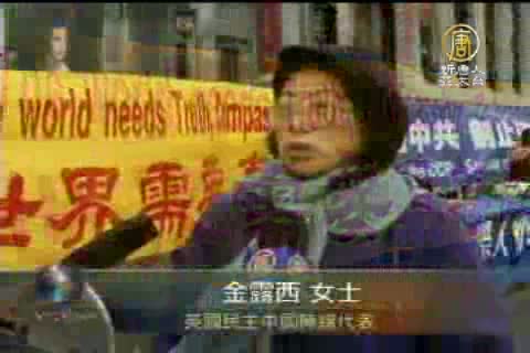 英國民主中國陣線代表 金露西:「這是社會所需要的——真善忍。人的良心,對真理的追求,人對善行的實施,這都是我們這個社會所需要的啊,為什麼中共卻害怕這些人呢,我看是因為,中共長期以來,用中共的這種宣傳,只讓人們信仰共產主義,只讓人們馴服他們的暴力,馴服他們的專制。」