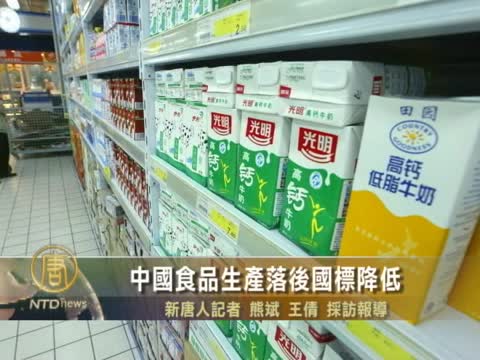 【新唐人2011年12月10日訊】近日,大陸媒體最近爆出,生鮮乳國標在公布前修改,這個標準曾被質疑為「倒退20年」,最近《速凍面米製品》食品安全新國標也放寬標準,引起民眾質疑,復旦大學公共衛生學院教授金泰廙表示,中國食品生產落後,運輸銷售不規範,食品安全標準因國情而降低。