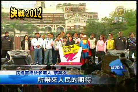 【新唐人亞太台2011年12月10日訊】歡迎回來,繼續來帶您看到今天的總統大選選戰焦點,選戰開始進入緊張倒數,民進黨今天號召小豬上凱道回娘家,現場萬頭鑽動,當民進黨總統候選人蔡英文出現時,民眾搖動手中的小豬,相當壯觀,蔡英文說,小豬要打倒社會的不公不義。 帶您看到今天現場的情況。