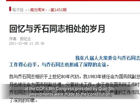 【新唐人2011年12月15日訊】中共十八大前夕,在江澤民「死而復生」頻頻現身中共媒體的同時,被視為趙紫陽愛將的前副總理田紀雲近日在《南方週末》發表文章,回憶前人大委員長喬石,並借喬石之口呼籲推進政治體制改革。十八大前中共面臨重重危機,黨內左、右不同流派暗潮湧動、頻頻交鋒。
