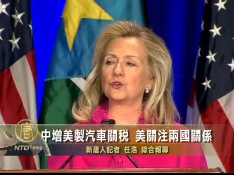 【新唐人2011年12月15日訊】星期三(12月14號),中共当局宣佈了一項懲罰性關稅政策,目標直指美國製造的汽車。而美國國務卿希拉里和美國駐華大使駱家輝都談起了兩國關係,其中希拉里認為兩國關係是積極的。