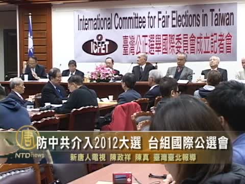 【新唐人2011年12月15日訊】台灣2012大選在即,中共近來舉辦軍演,外媒揣測是有意干選。由前總統府資政彭明敏發起的「台灣公正選舉國際委員會」,今天(15日)在立法院正式成立,他們觀察,兩岸互動頻頻,這次大選,中共介入的風險增加,國際關注不能鬆懈。