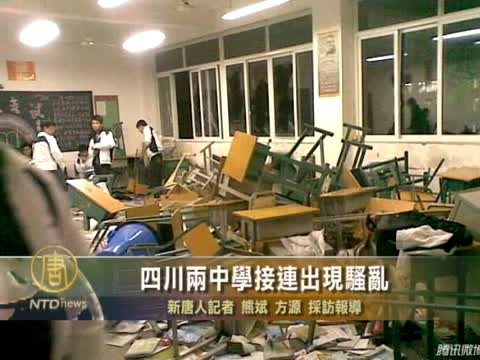 【新唐人2011年12月16日訊】近日,四川的校園很不平靜,成都鐵路工程學校,接連2天發生漢族學生群毆藏族學生事件,將藏族學生寢室及教室砸毀,最後出動數百武警鎮壓。另外,四川隆昌縣第一中學也發生老師因績效工資遭拖欠罷課事件,學生則燒書響應。