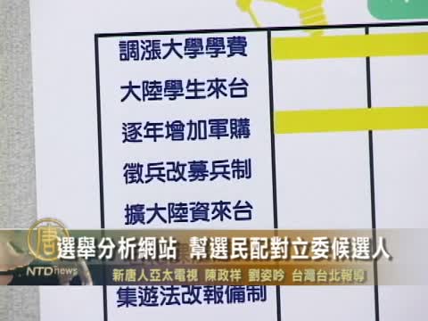 【新唐人2011年12月16日訊】為了讓選民更了解立法委員在重大議題上的態度,公民監督國會聯盟結合學界,研發一套「iVOTER議題立場分析測驗」系統,藉著分析各候選人相關資料,方便選民做為投票的參考依據。