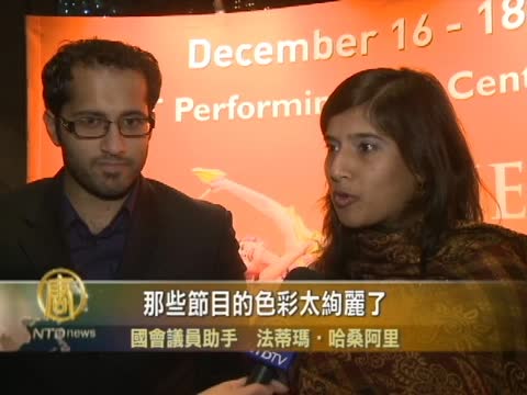 【新唐人2011年12月18日訊】12月17日晚間,德州達拉斯AT&T表演藝術中心美國紐約神韻藝術團的演出中場,和家人一同前來觀賞演出的美國國會議員艾迪·約翰遜的助理哈桑阿里被神韻的演出所折服,她表示有幸看到神韻的演出,讓她非常感激。